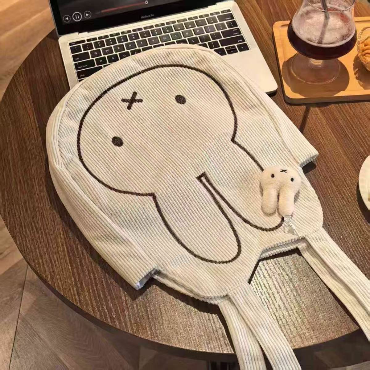 Corduroy Bunny Print Tote Bag | Casual Shoulder Bag for Everyday Use